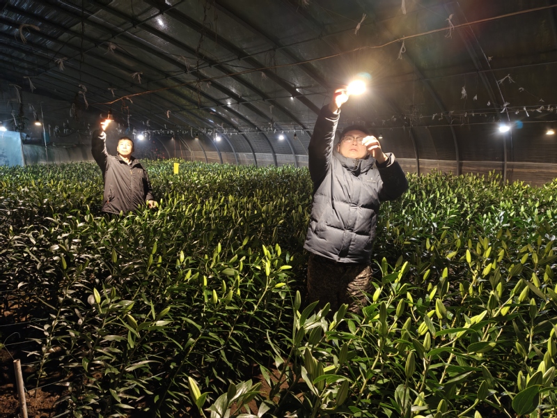 崗埠農場則聚焦高效農業示范園作物分類管護,組織人員對所有大棚骨架、保溫棉被進行全面檢修加固,為1.5萬株百合花苗噴施抗逆性葉面肥,對西紅柿苗開展精準打杈、澆水管理,提前準備40余臺套熱風機、水源熱泵等加溫設備,其中31號大棚通過水源熱泵將夜間溫度穩定在16.5℃,有效保障作物生長關鍵期需求。